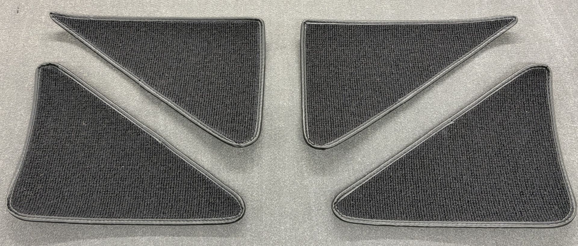 This is a Ferrari 308 Engine lid carpet kit. Made from Black loop pile carpet as original with the correct vinyl edge binding. It consists of 4 triangle piece that fix to the rear boot lid. Everything you will need to re carpet your engine lid to look as it did when your 308 left Maranello.
